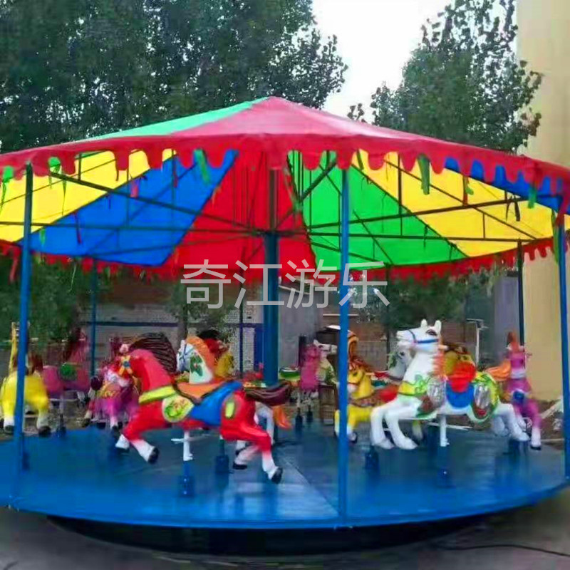 Perlengkapan hiburan penanganan mudah Rapat pertukaran kuil Qijiang 12 orang 16 orang opsional mesin hiburan kuda putar