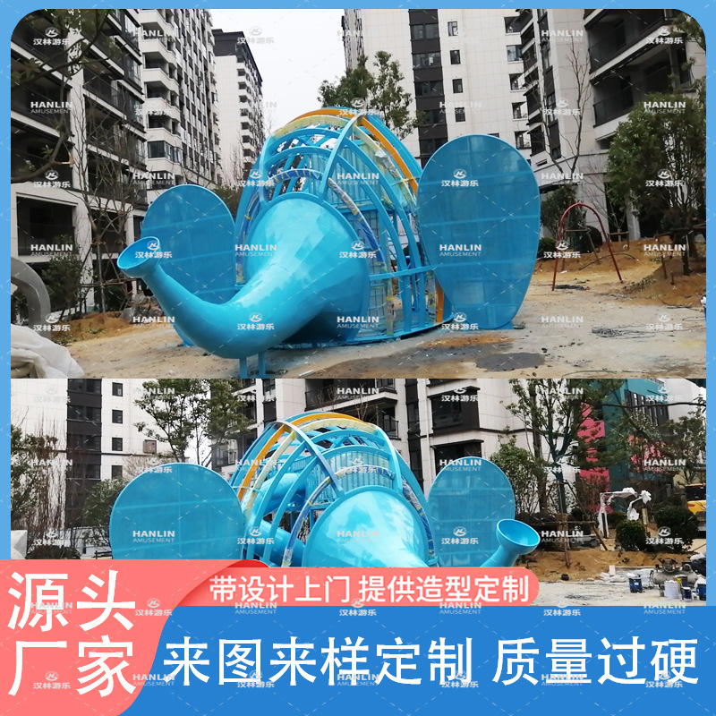 Peralatan tempat bermain anak-anak stainless steel gajah real estate pemodelan kreatif non-standar seluncur luar ruangan desain taman indah