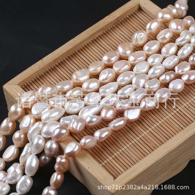 Zhuji mutiara berbentuk Barok 3-11mm mutiara air tawar alami lubang lurus mutiara ringan dua sisi lubang vertikal