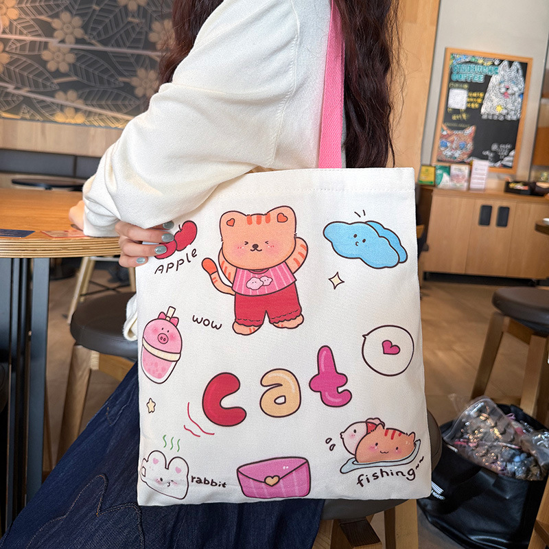 Produsen Grosir Kartun Tas Sekolah Pelajar 2025 Tas Bahu Tunggal Kapasitas Besar Model Baru Tas Kanvas Tas Jinjing Lucu