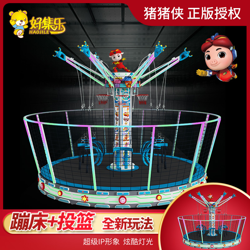 Babi Man pengambilan gambar bungee berputar anak-anak, empat orang, perlengkapan trampolin bercahaya enam orang, fasilitas taman bermain persegi