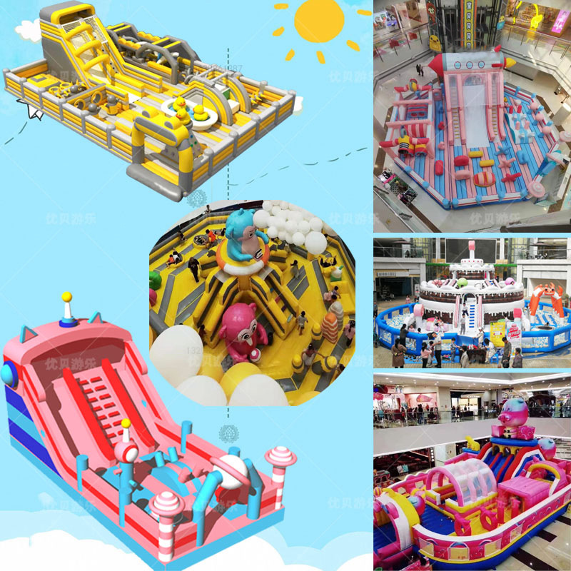 Istana tiup atrium komersial besar Peralatan tempat bermain anak-anak istana nakal luar ruangan perencanaan kombinasi dalam ruangan