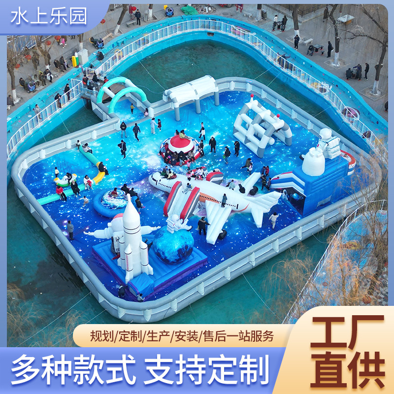 30*25 m peralatan pintu masuk air besar luar ruangan seluncuran tiup mobile kolam renang pintu masuk taman air