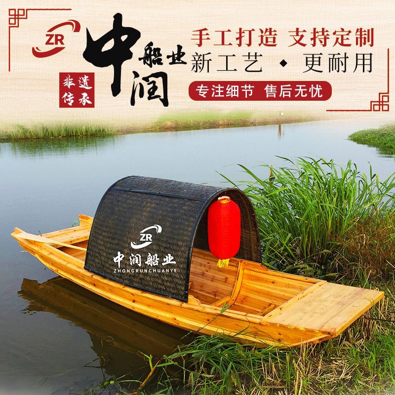 Pasokan Perahu Kayu Perahu Ikan Dekorasi Wisata Wisata Listrik Air Perahu Kecil Kayu Solid Antik Tangan Bergoyang Perahu Tenda