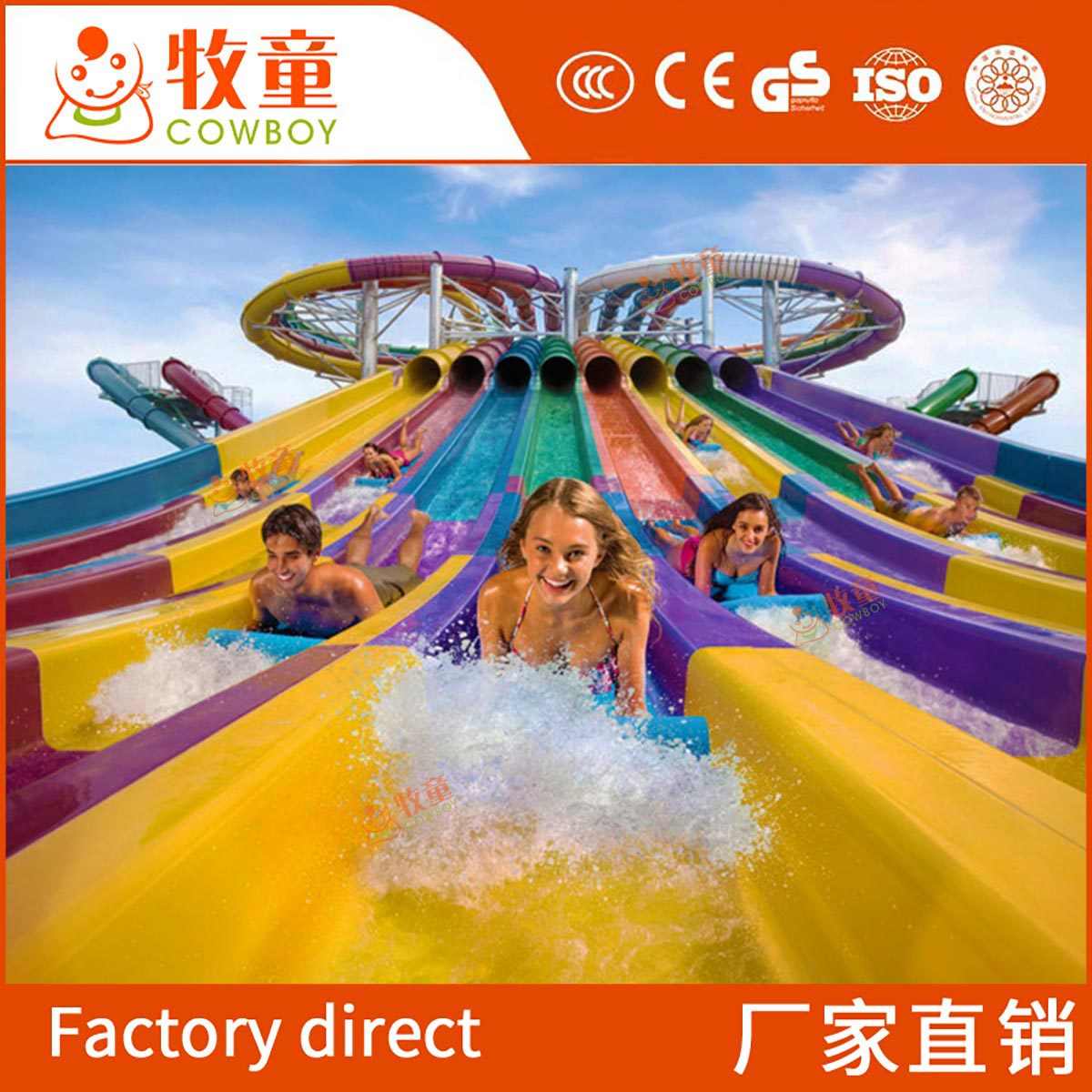 Peralatan hiburan air slide pelangi sastra perjalanan indah spot kecepatan tinggi FRP perosotan air taman air geser