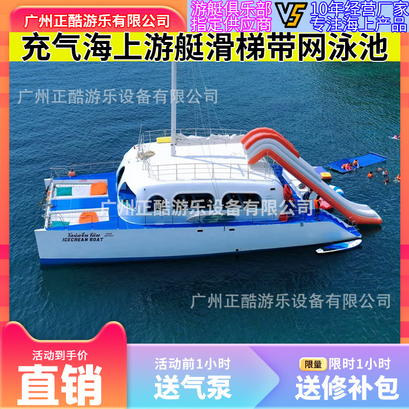 Seluncuran Kapal Pesiar Inflatable Air Besar dengan Jaring Kolam Renang Meja Bar Istirahat Sofa Meja Melayang Kursi Santai Outdoor Produsen