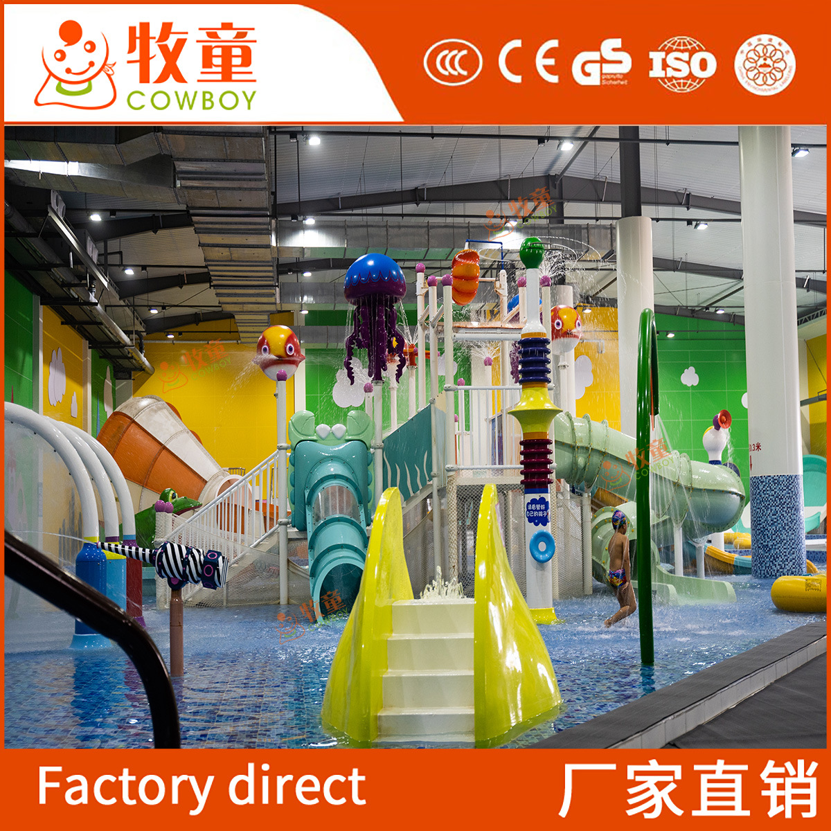 Taman Air besar dalam ruangan anak-anak, Kolam renang suhu konstan, perlengkapan slide FRP