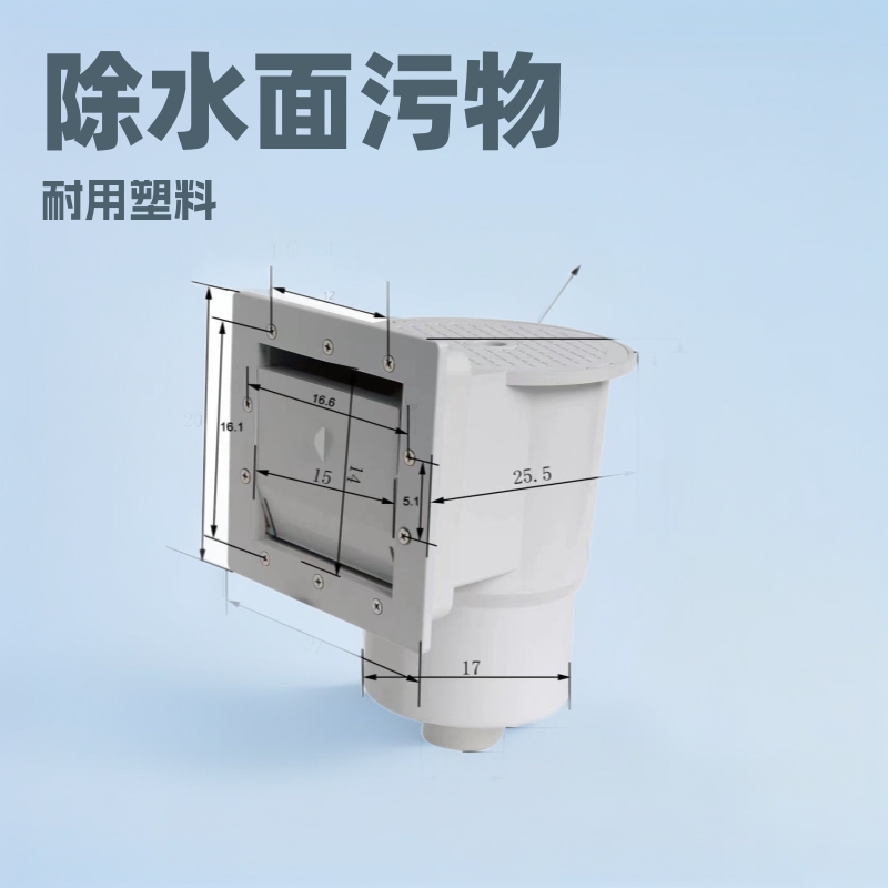 Pasokan langsung dari pabrik kolam renang skimmer kolam renang peralatan isolasi terak mulut lebar menghilangkan puing-puing permukaan dengan fungsi