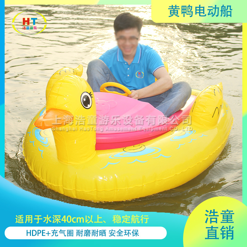 Haotong perahu bumper air dangkal, perahu kuning bebek goyang tangan, peralatan bermain air perahu polyethylene anak-anak