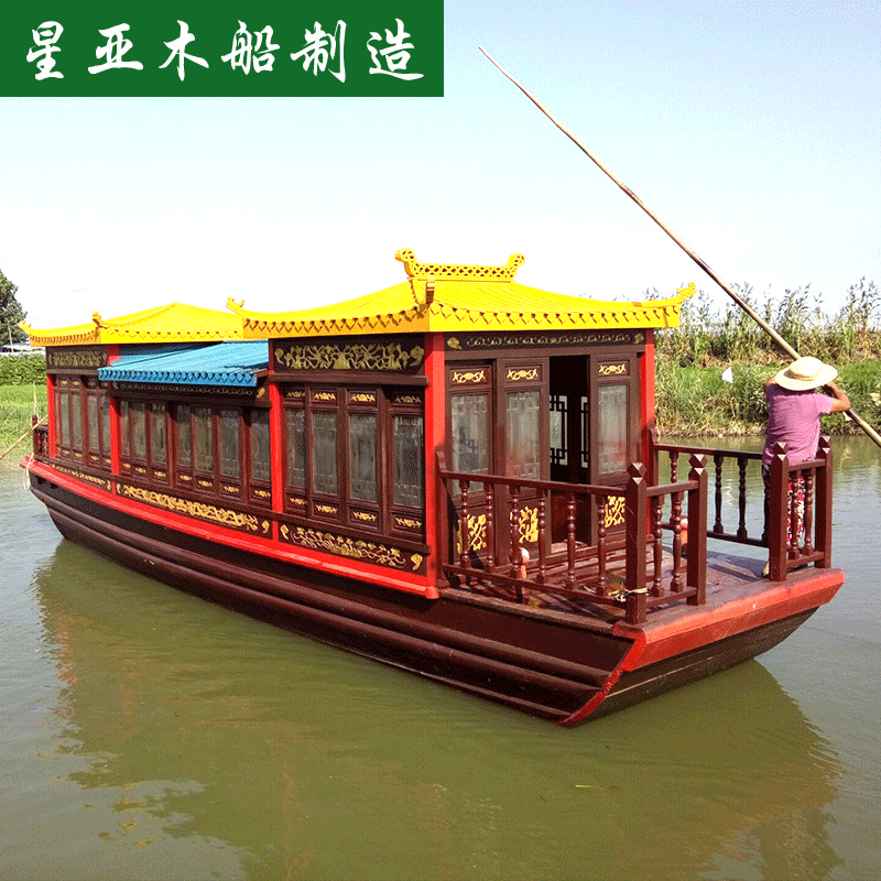 7 m perahu tamasya elektrik, perahu hiburan santai, perahu kayu solid antik, perahu taman pemandangan indah, perahu kayu