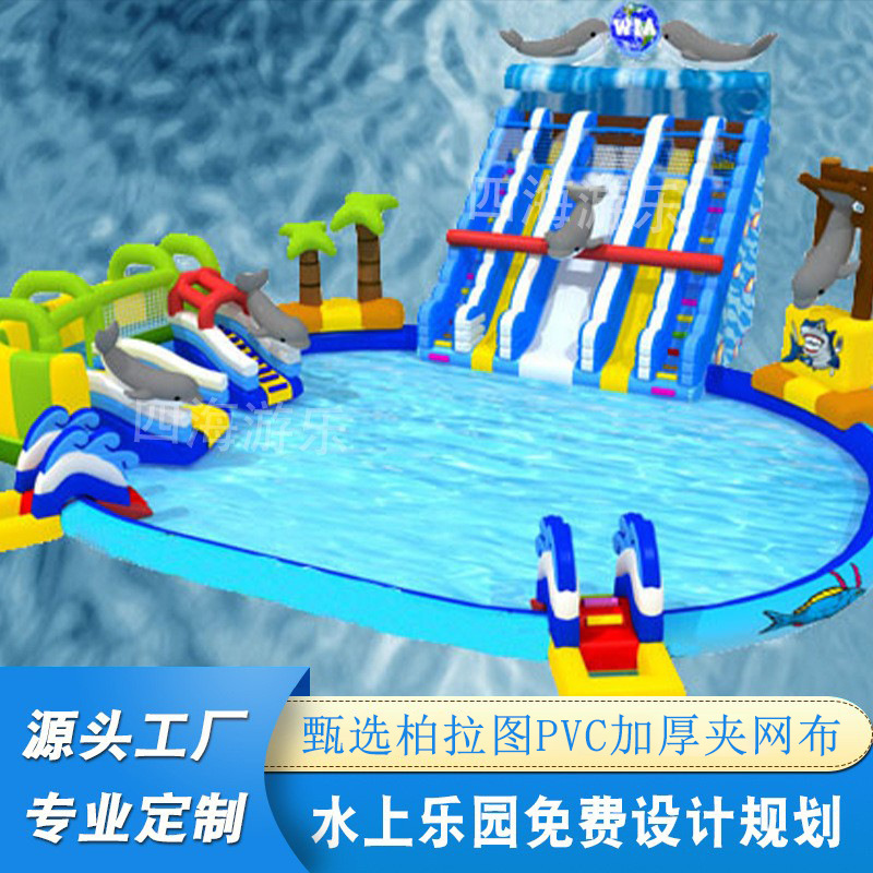 Taman Air braket besar kolam renang mobile kolam renang tiup kombinasi naga hiu bermain peralatan hiburan air