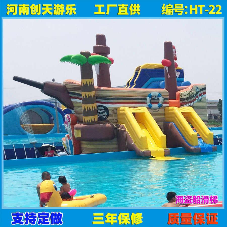 Kolam renang tiup luar ruangan besar dapat digerakkan taman air kombinasi bajak laut kapal braket geser kolam renang kombinasi