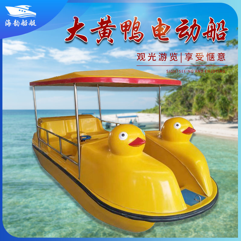 Perahu listrik FRP, baru 4-orang drainase sendiri berkepala ganda taman bebek kuning besar perahu baterai listrik tempat indah perahu hiburan