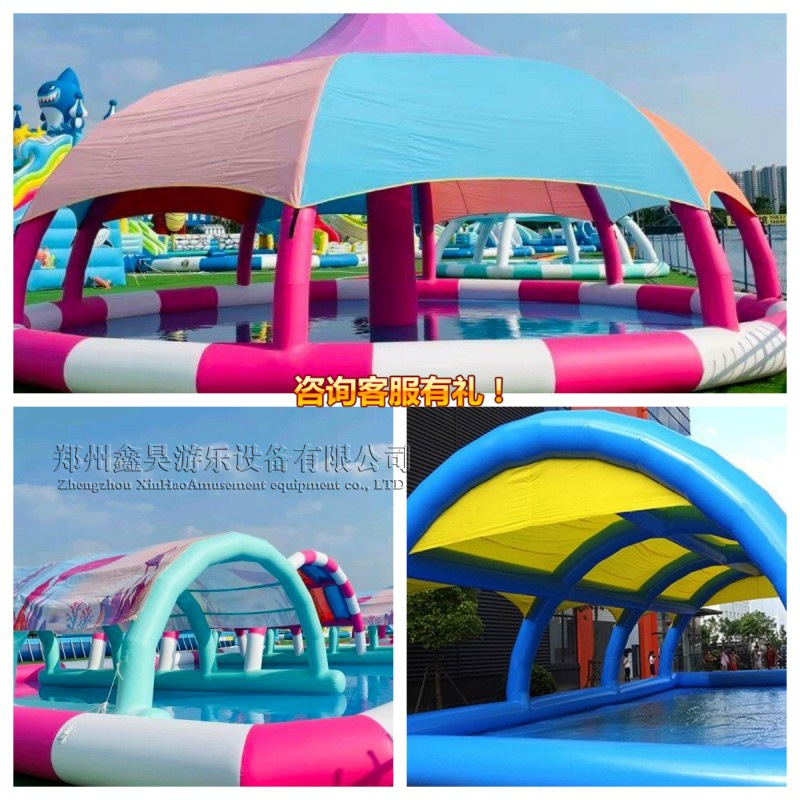Kolam renang tiup taman air anak-anak, perlengkapan hiburan besar seluncuran PVC braket musim panas