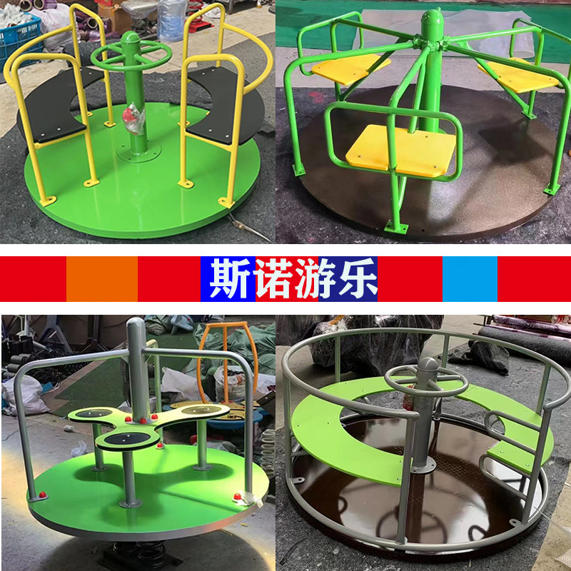 Kursi putar luar ruangan anak, mainan anak-anak, taman komunitas, empat fasilitas hiburan kuda berputar, jenis manufaktur, kursi putar banyak orang