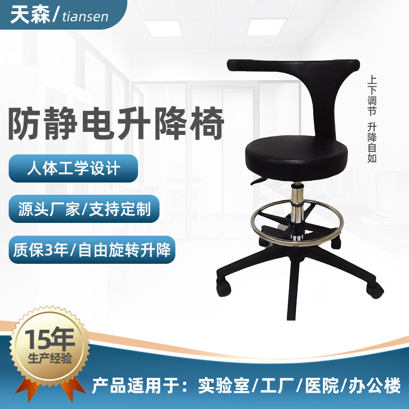 Kustom Angkat Kursi Kursi Lift Anti Statis Busa PU Pengolahan Bangku Angkat Putar di Ruang Laboratorium