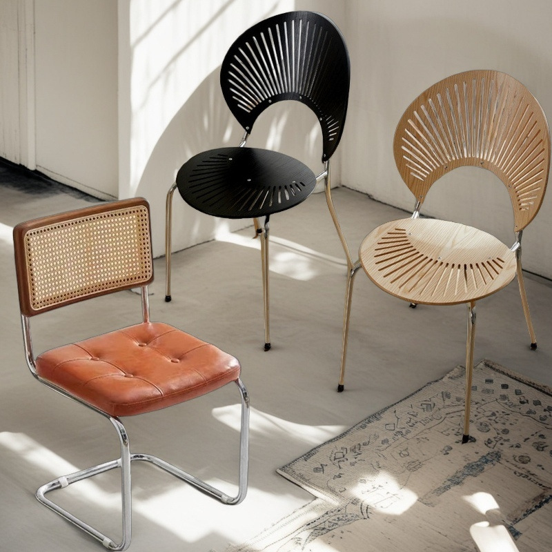 Kursi Kerang Kayu Solid Eropa Utara Kursi Makan Kursi Selempang Kursi Selempang Internet Kursi Meja Makan Sederhana Abad Pertengahan Retro Prancis Kursi Rias