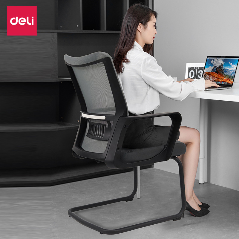 Deli 91204 kursi konferensi terintegrasi non-slip tripod kepadatan tinggi spons kursi kantor bingkai busur kursi jala