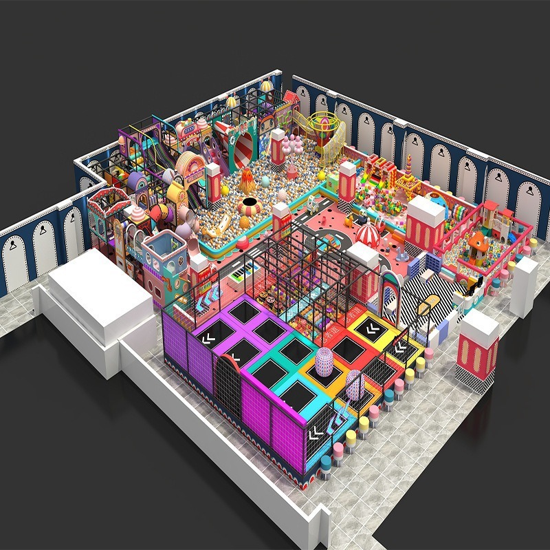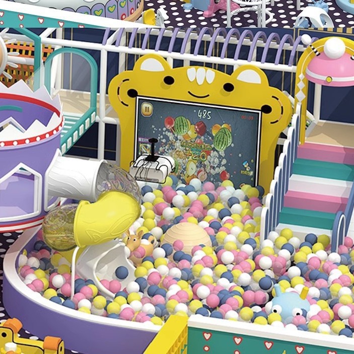 Taman anak-anak besar dalam ruangan nakal taman bermain macaron tema hiburan peralatan mall slide produsen