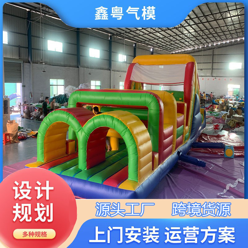 Istana tiup luar ruangan pvc, pintu masuk tanah besar kombinasi dengan rintangan, jalur pertandingan, pertemuan olahraga menyenangkan