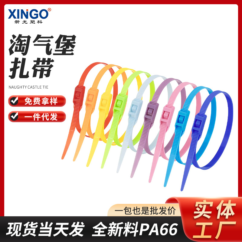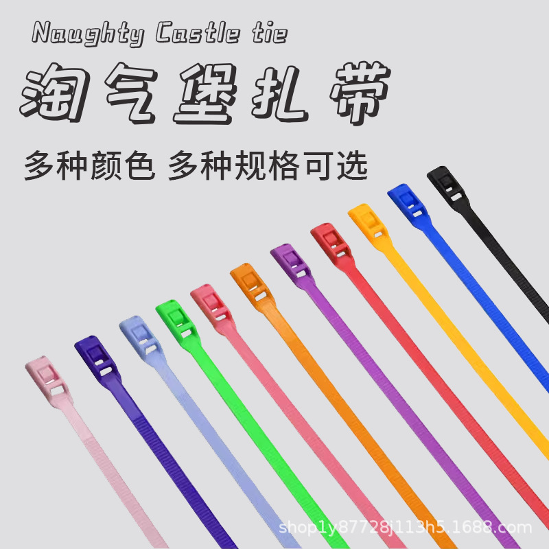 Pengikat kabel gesper datar pengikat tetap, ikat kabel nilon warna penguncian otomatis, produsen pengikat kabel paket istana nakal