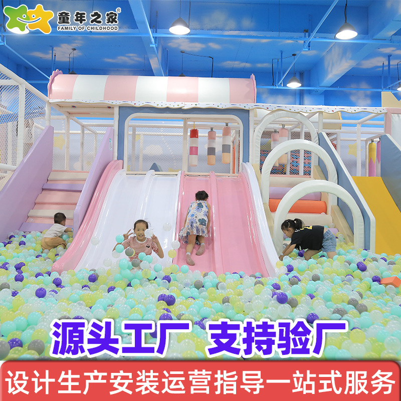 Istana nakal besar dan kecil seri macaron perlengkapan taman hiburan ekspansi tema anak-anak trampolin geser anak-anak