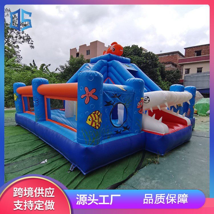 Benteng tiup lintas batas rumah tangga kecil trampolin seluncuran luar kotak anak-anak trampolin produsen taman bermain