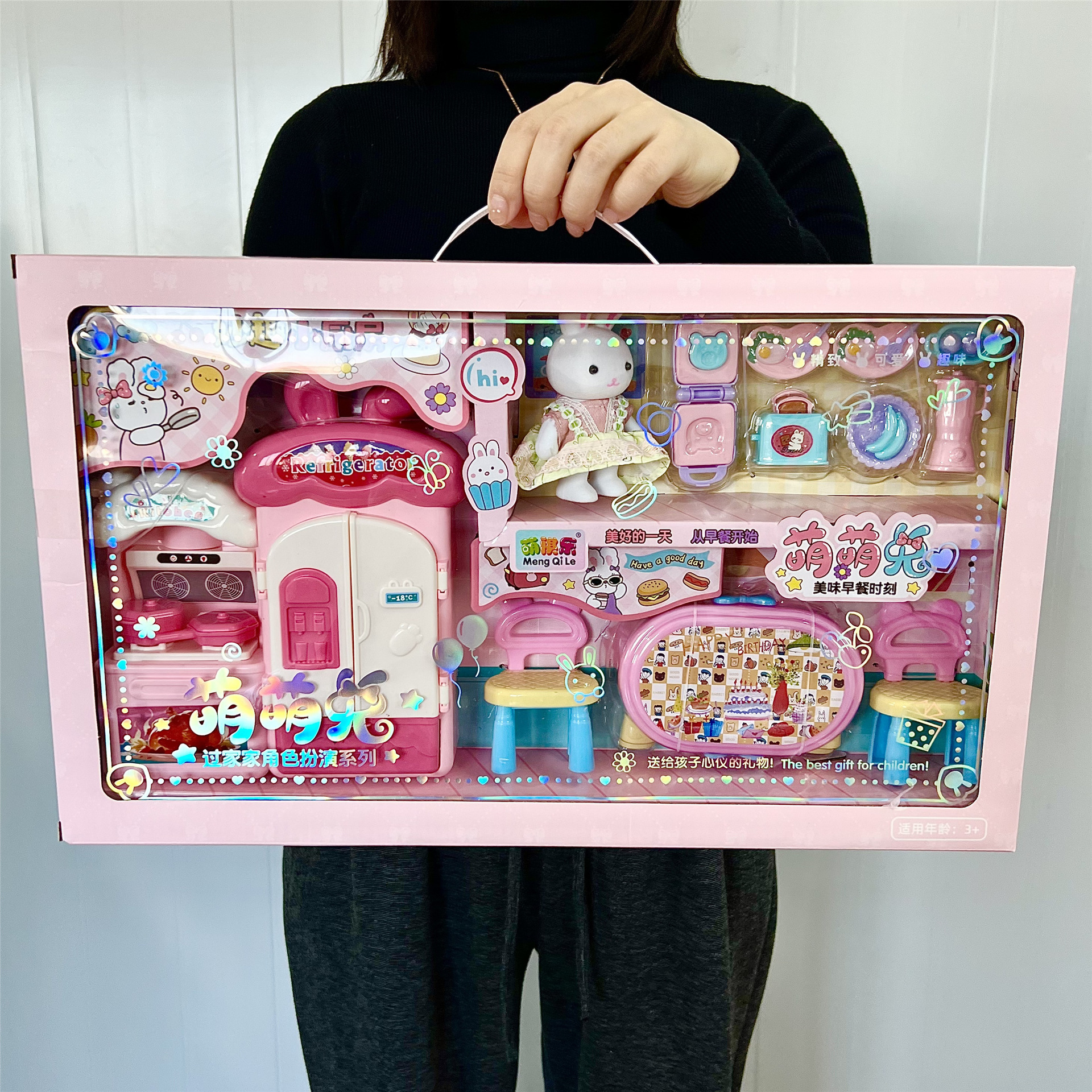 Anak perempuan bermain mainan menyenangkan dapur kecil set vila kecil tempat kelas pelatihan TK hadiah besar