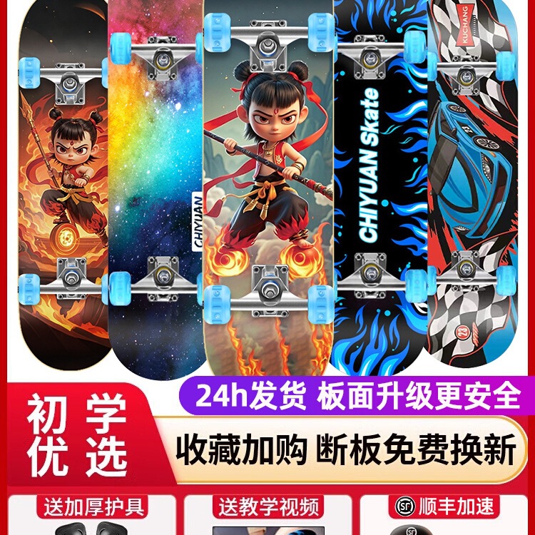 Skateboard Roda Empat Anak Pemula Anak Laki-laki Perempuan 3-6 sampai 12 Tahun 8 Dewasa 10 Ganda Mengangkat 15 Skuter Profesional