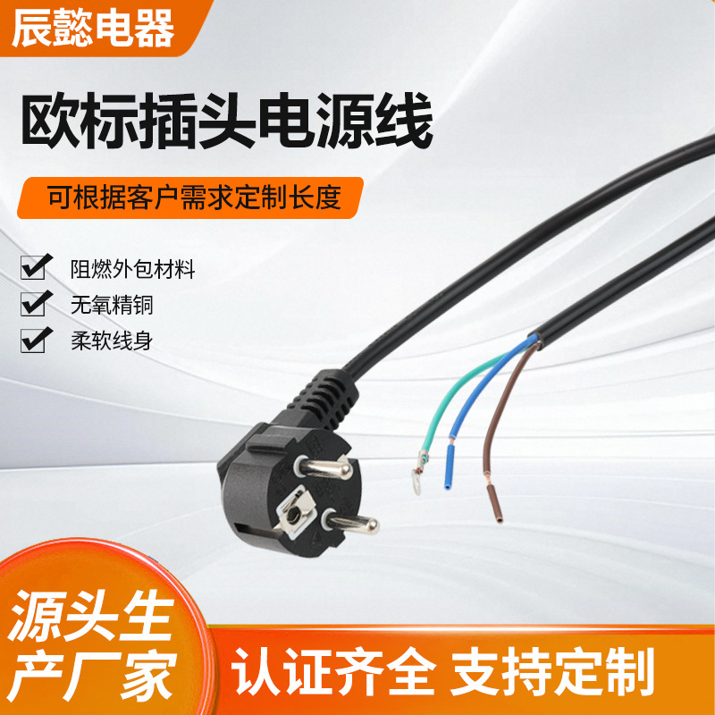 VDE Kabel Daya Tembaga Murni Eropa Kabel Listrik Penanak Nasi Listrik Ketel Komputer Tiga Lubang 3 Inti Kabel Plug-in Perancis Standar Eropa
