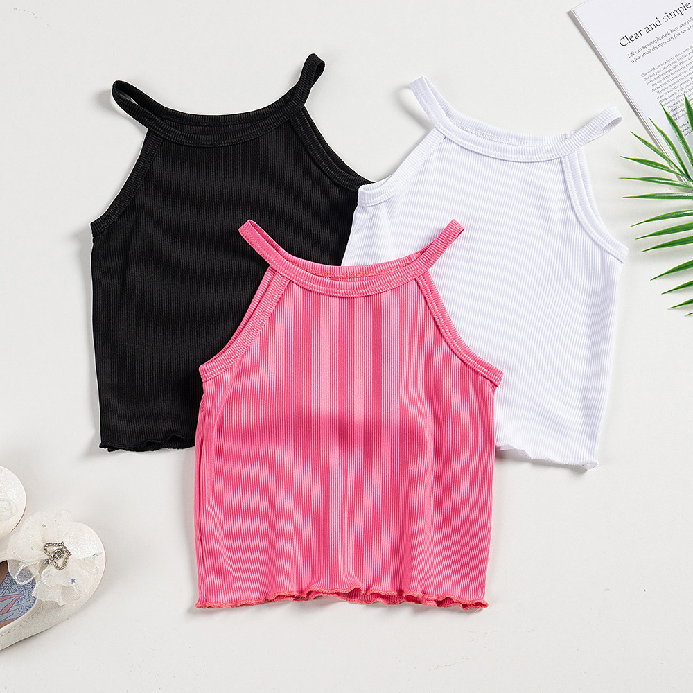 Rompi Anak Perempuan Musim Panas Model Baru Lintas Batas Baju Atasan Tali Dipakai Luar Warna Solid Tiga Potong Baju Atasan Tali Bahu Terbuka Bayi Modis