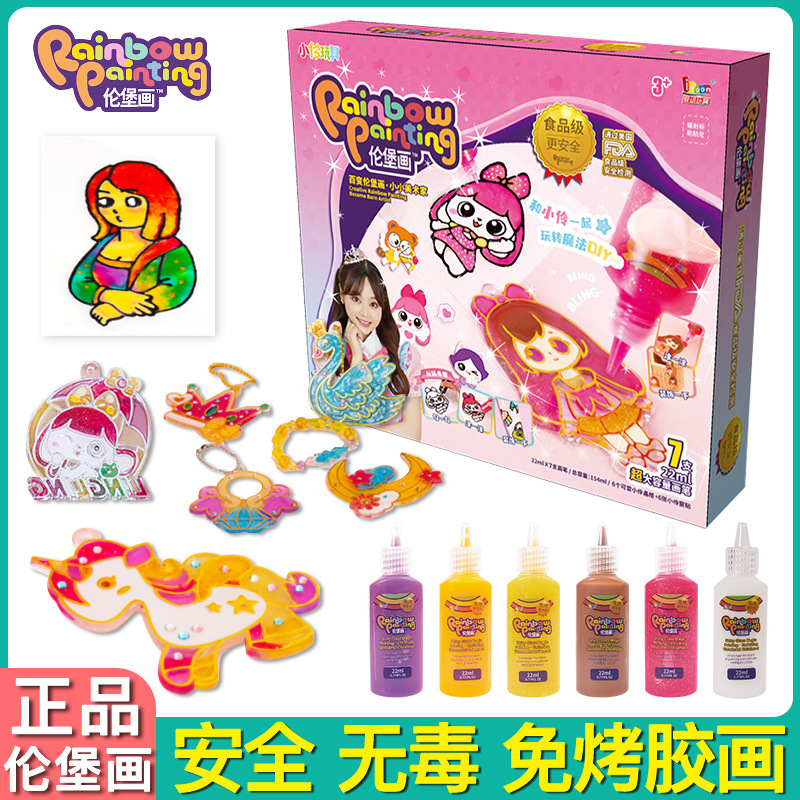 Lunbao lukisan anak-anak lem bebas memanggang lukisan buatan tangan diy produksi mewarnai cat Xiaoling mainan anak perempuan roda Bao lukisan Lunbao