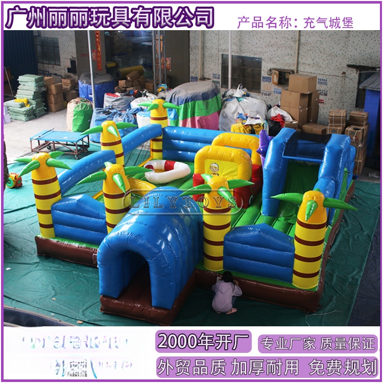 Seluncuran Kastil Pohon Kelapa Anak Inflatable Luar Ruangan Besar Jump Trampolin Kombinasi Peralatan Hiburan Produsen Benteng Nakal