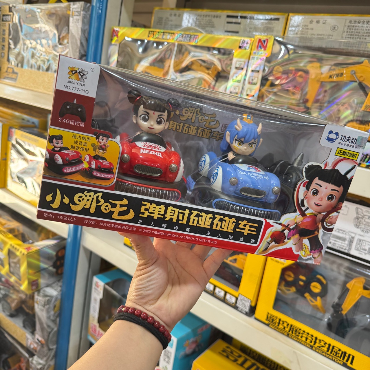 Mobil Remote Control Anak-anak Nezha Aocing Bumper Mobil Dua Orang Bertempur Melayang Gelembung Kart Lampu Musik Mobil Remote Control