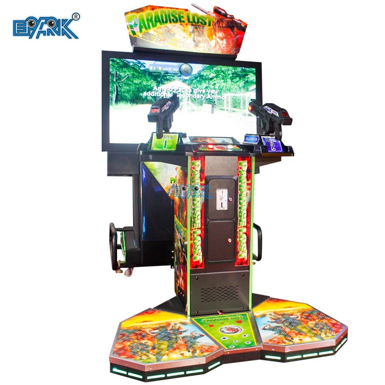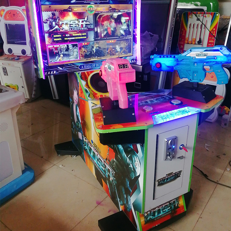 Mesin permainan menembak ganda anak-anak, peralatan belanja video game menembak pistol ganda bentuk khusus yang dioperasikan koin daya api penuh