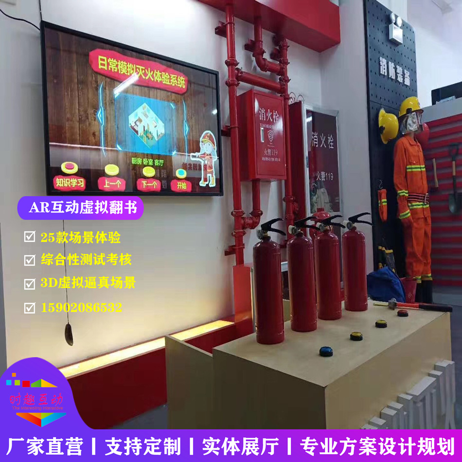 AR simulasi interaktif sistem pemadam api pengalaman perangkat simulasi 3D pemadam api keselamatan pengetahuan pendidikan aula pengalaman
