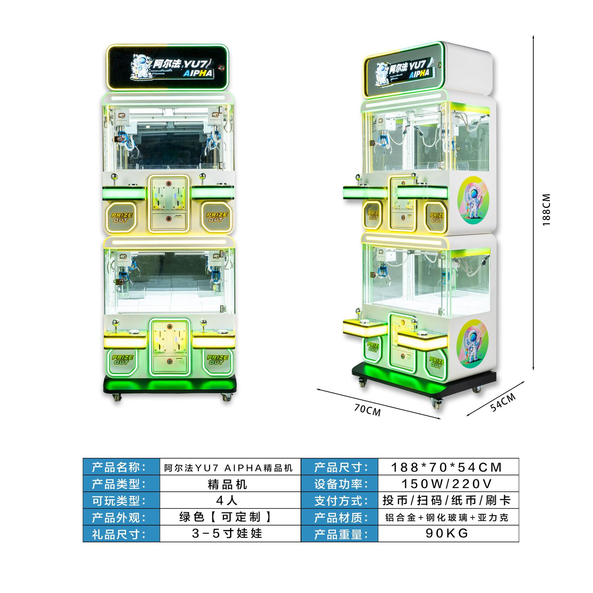 Mesin boneka penuh transparan mesin boneka komersial besar klip boneka mesin butik empat orang mesin pindai kode koin