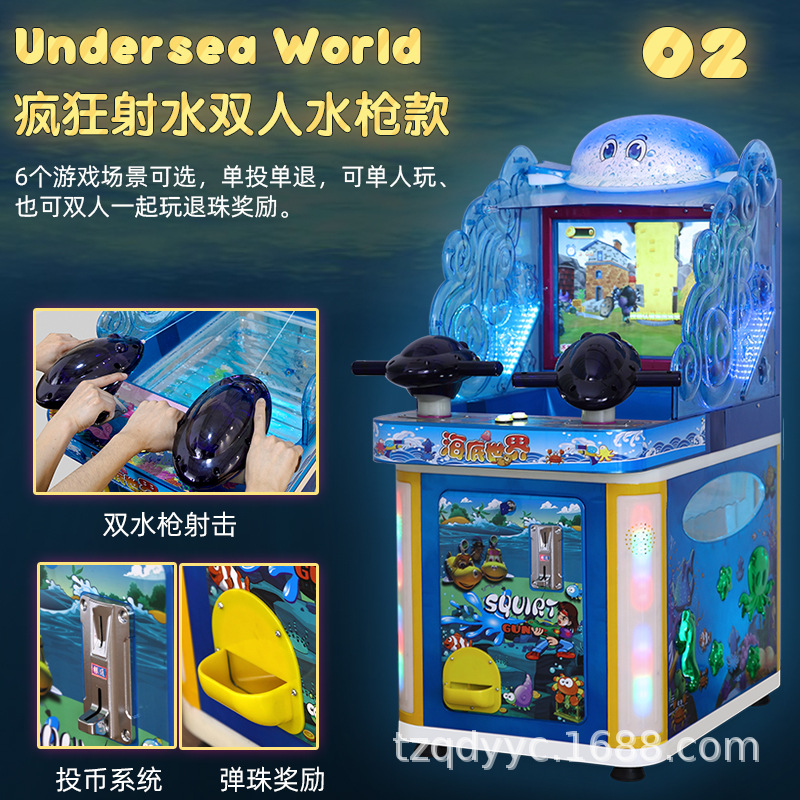 Mesin permainan taman menembak air mesin menembak air yang dioperasikan dengan koin gambar air ganda Dunia Bawah Air mesin simulasi menembak senapan ganda