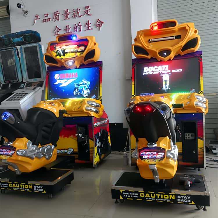 Mesin game sepeda motor FF ganda bekas, simulator balap ganda 42 inci, mesin hiburan surga anak-anak