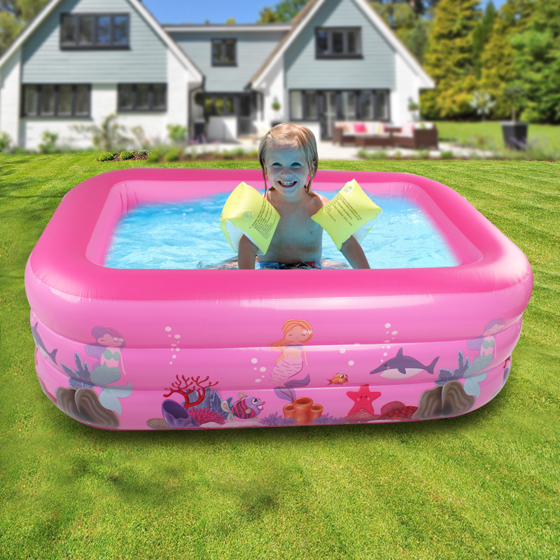 Kolam renang tiup anak-anak, ember berenang luar ruangan bayi kartun putri duyung