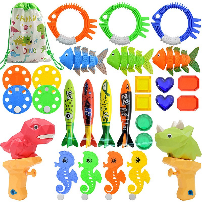 Kombinasi Mainan Menyelam Lintas Batas Musim Panas Kolam Renang Berburu Harta Karun Hiu Air Klip Musim Semi Permata Torpedo