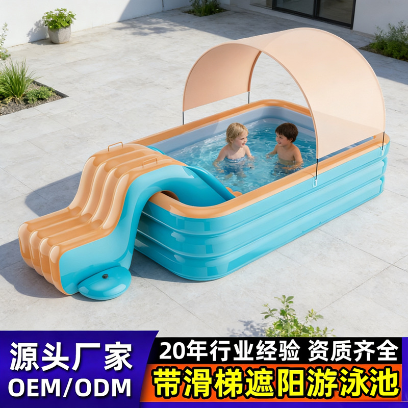 Kolam renang tiup untuk anak-anak, kolam renang keluarga luar ruangan lintas batas, kolam bermain rumah tangga dengan tenda seluncur, kolam bola laut