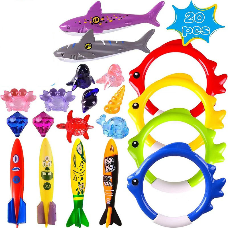 Amazon populer mainan menyelam setelan anak-anak kolam renang pelatihan air-play torpedo cincin selam harta karun plastik rendam