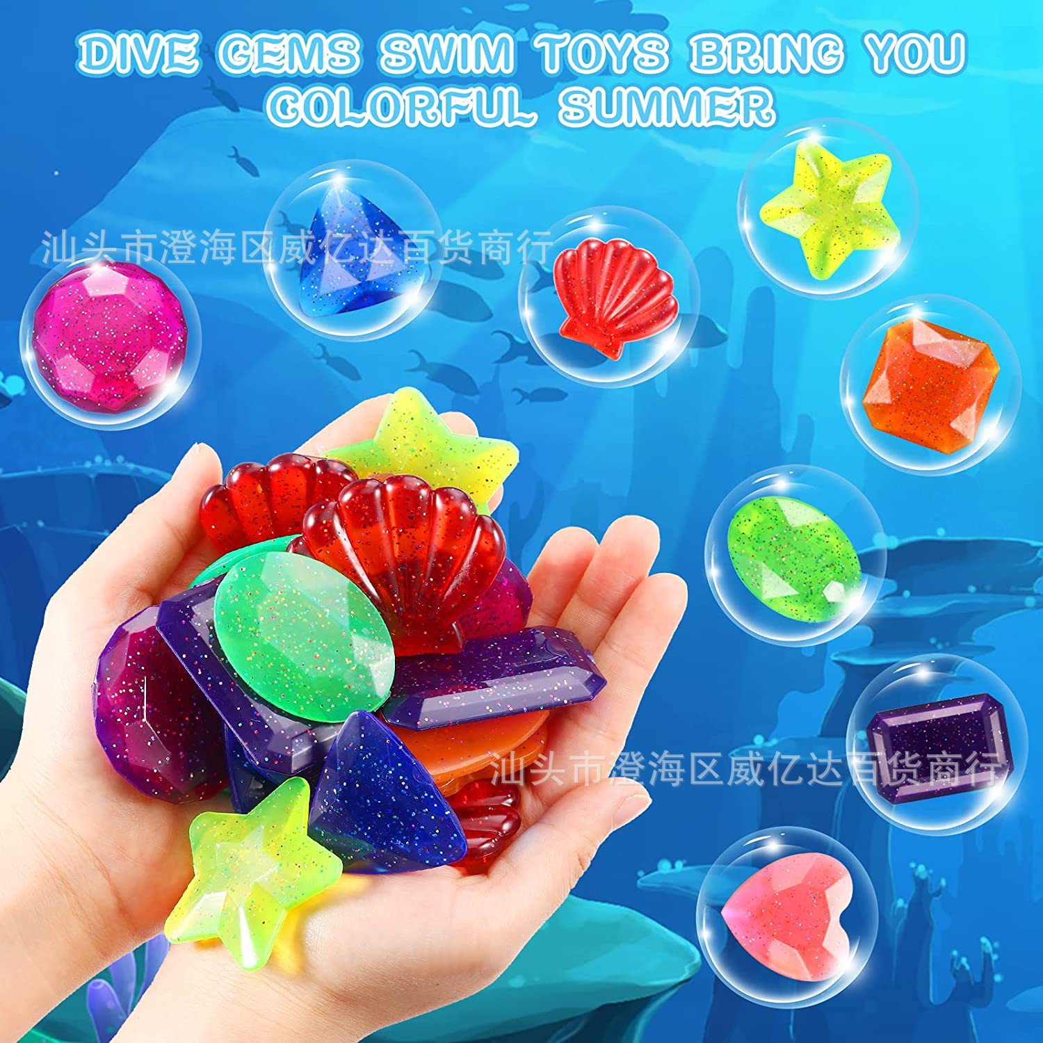Pasokan Amazon mainan selam musim panas bermain air plastik permata kolam renang interaktif bermain air mainan DIY yang cocok