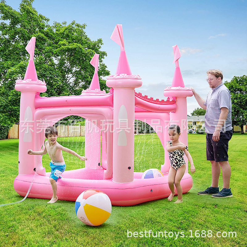 Istana kolam renang tiup PVC merah muda anak-anak, dengan semprotan air mainan air anak-anak musim panas dengan fungsi semprotan air