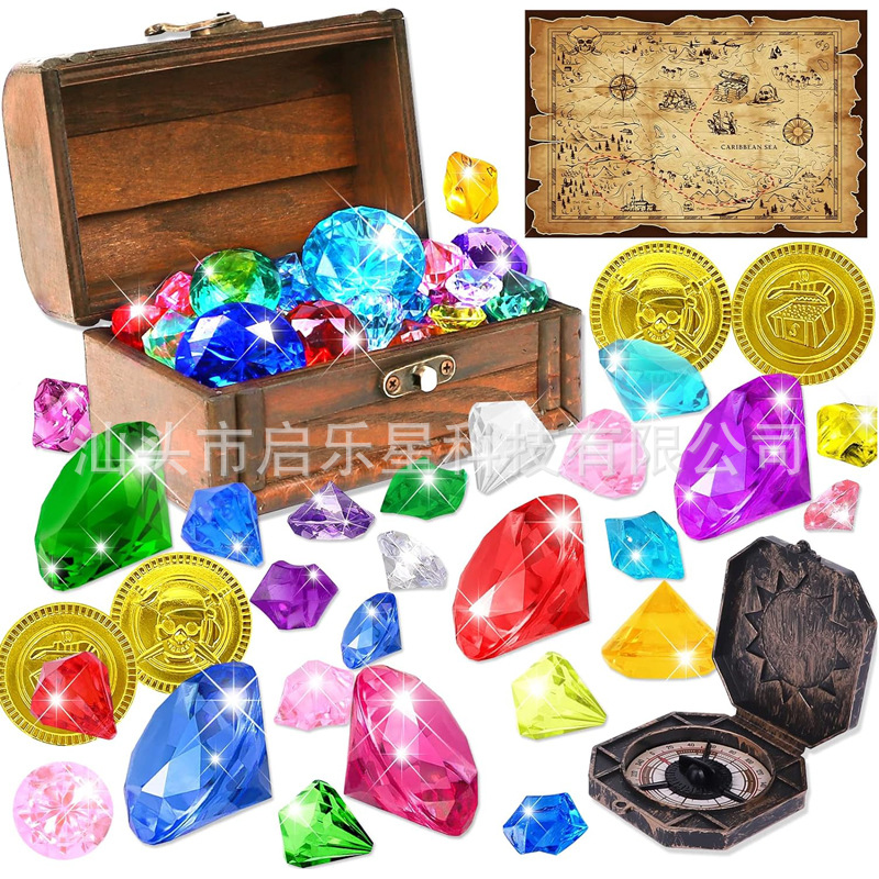 Cross-border kolam renang anak-anak, mainan harta karun bajak laut berburu berlian kristal buatan tangan DIY kotak harta karun musim panas