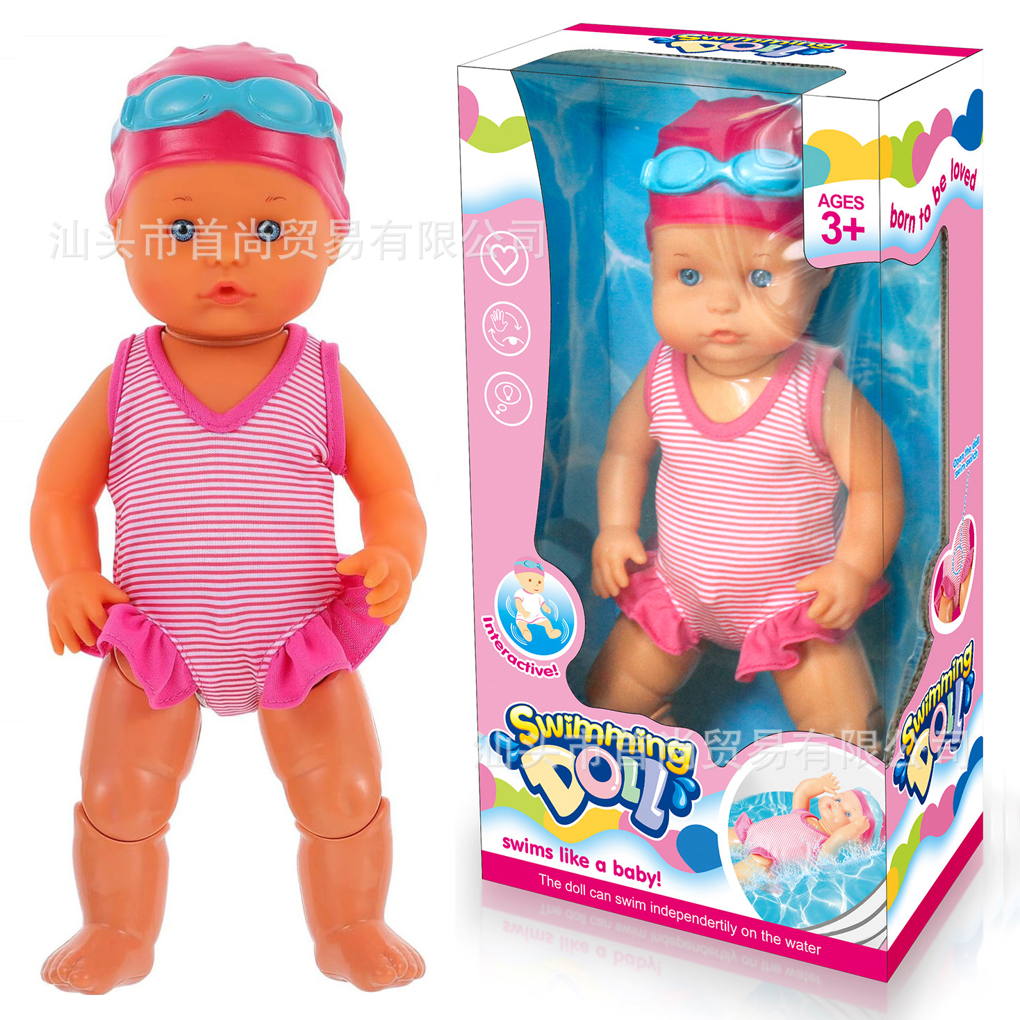 Cross-border boneka renang elektrik anak-anak, mainan kognitif mengapung garis dada simulasi bak mandi kolam musim panas