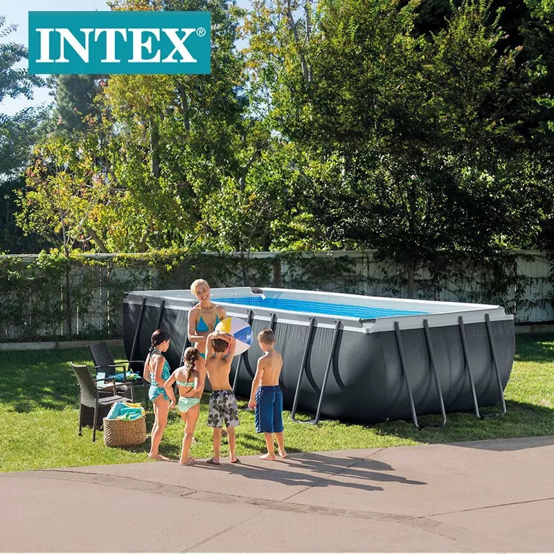 INTEX26356 rak pipa persegi panjang 18 kaki, rak jaring braket klip super besar untuk anak-anak, kolam renang keluarga