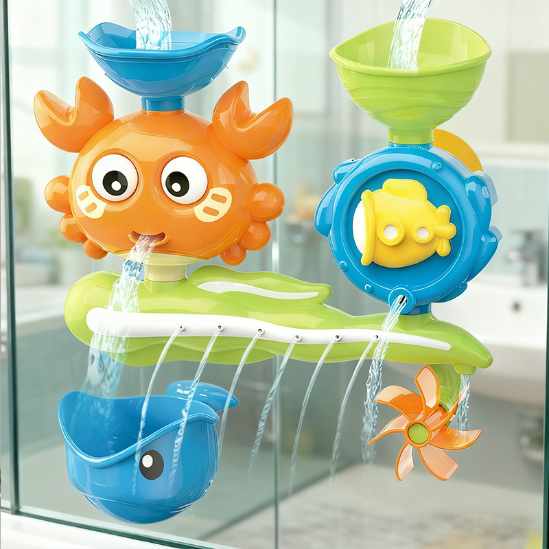 Mainan air lintas batas, mainan air kamar mandi anak-anak dengan jalur putar, mainan mandi bayi berbentuk telur semprot air
