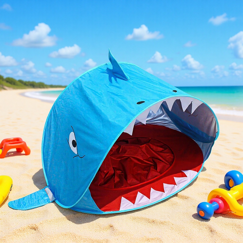 Tenda pantai anak-anak kerai pantai bayi pembukaan cepat lipat rumah mainan luar ruangan tenda hiu Amazon dalam stok